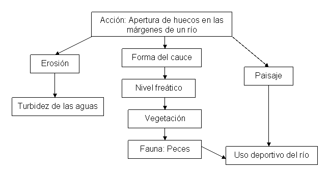 Otra posible forma inicial de identificar impactos es realizar la lista de chequeo utilizando relaciones de causa – efecto. Ejemplo de árbol de relaciones: |
